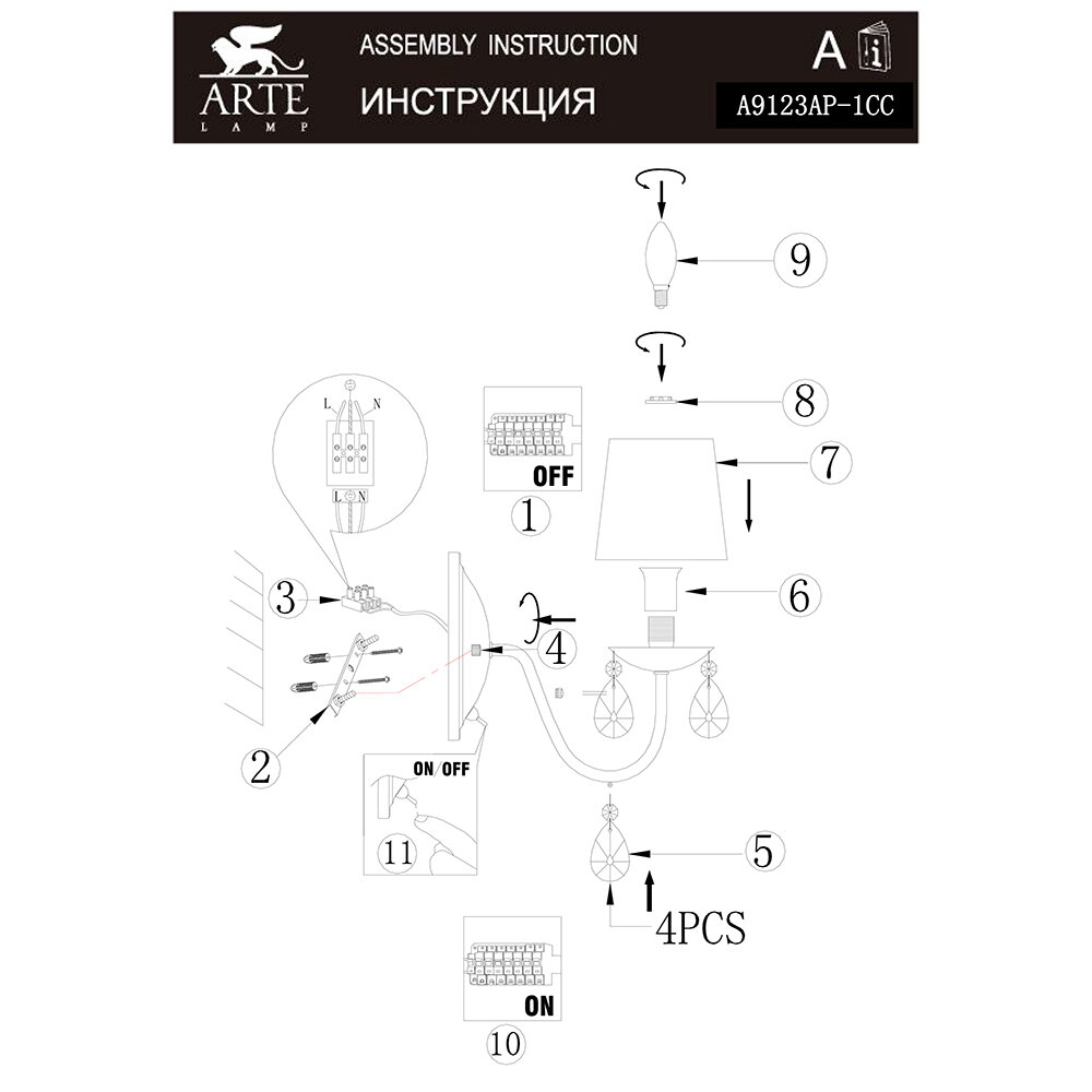 | Комплектация | бра Arte Lamp A9123AP-1CC |