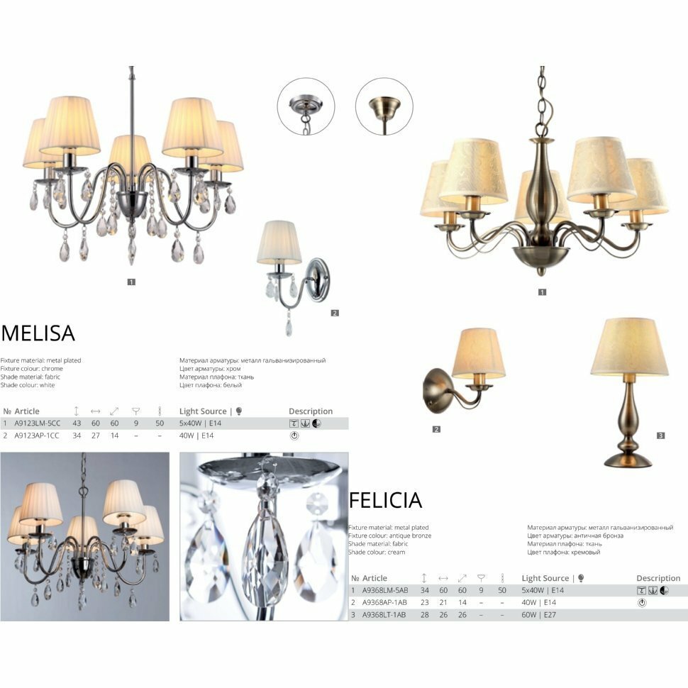 | Особенности | возможность подключения диммера / с абажуром / с выключателем |