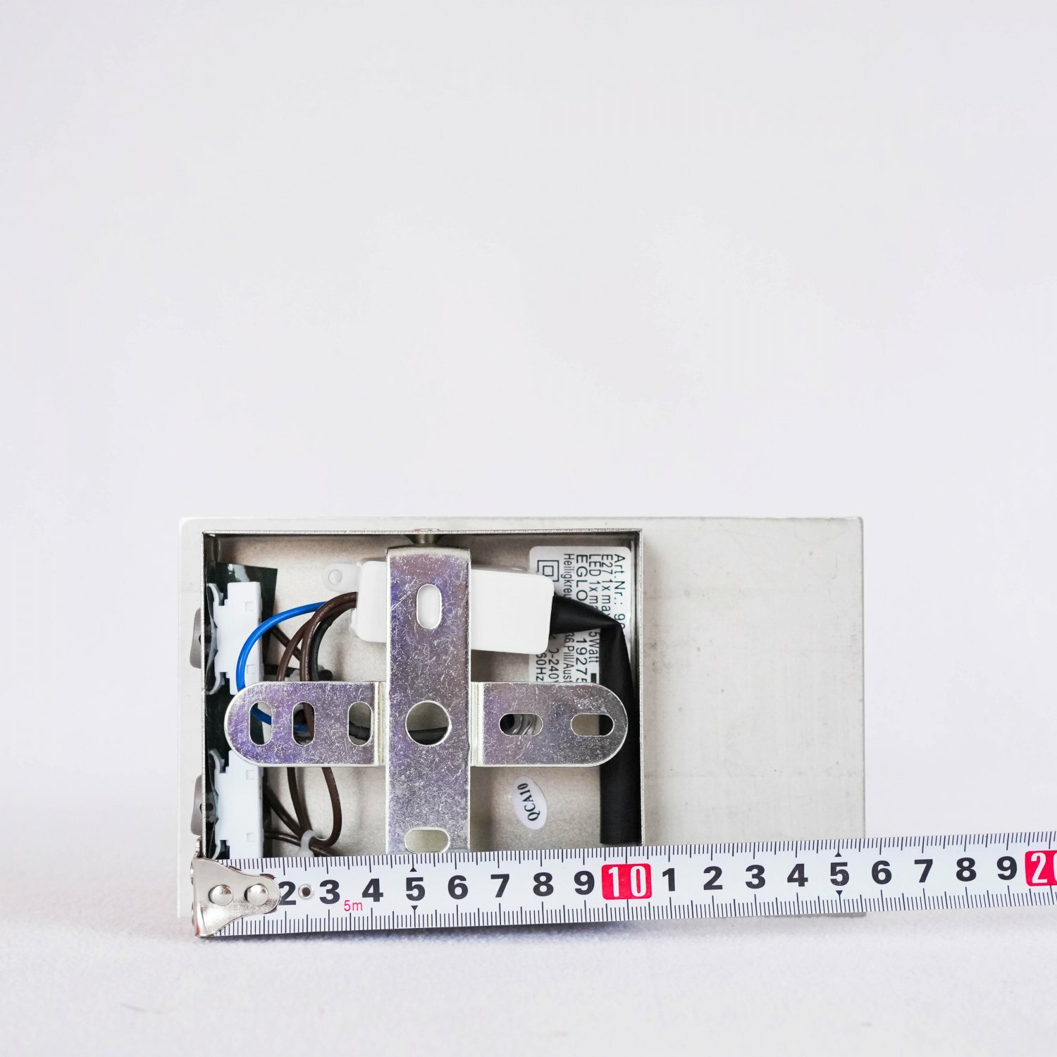 В комплекте нет ничего, кроме самого светильника и абажура. Ни крепежа, ни шнура (видимо потому что рассчитано на подводку из стены и незаметного подключения. Однако не всегда так можно и нужно). Кстати, это и не недостаток даже, а особенность конструкции - шнур в принципе не предусмотрен, так как под него нет и отверстия в коробке. Это и плюс (кому так надо) и минус (кому так не надо). |