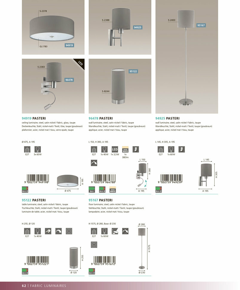 Ниже Вы можете прочитать отзывы на 96478 Бра EGLO Pasteri, ознакомится с подробными характеристиками, посмотреть интересные обзоры и фотографии на 96478 Бра EGLO Pasteri.