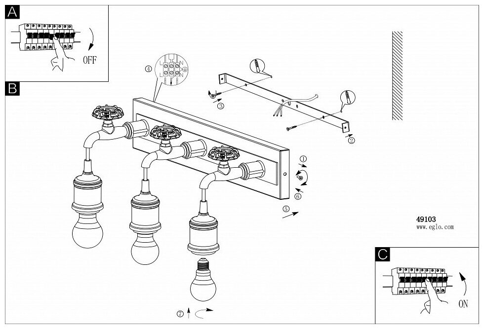 Настенный светильник бра лофт стиля GOLDCLIFF Eglo 49103