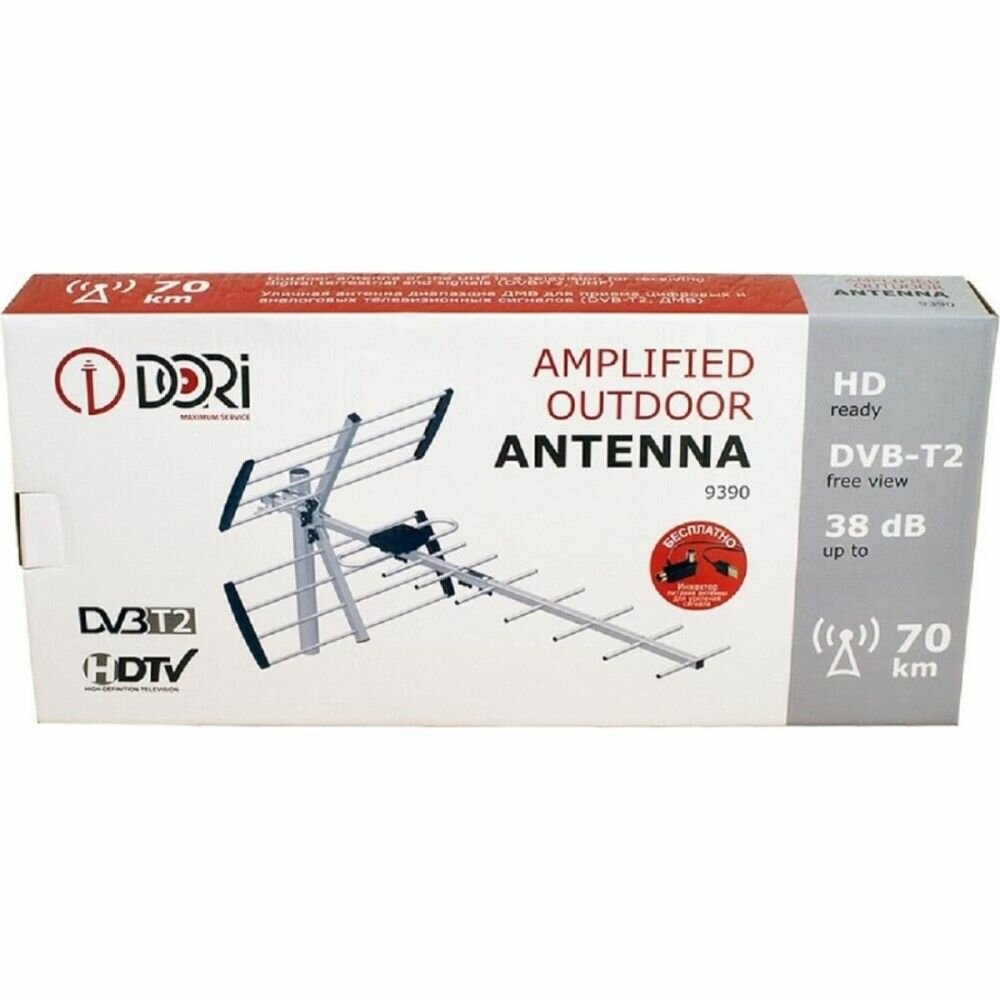 Антенна Dori 9390, уличная, активная, 38 дБ, DVB-T, DVB-T2, цифровая, с усилителем