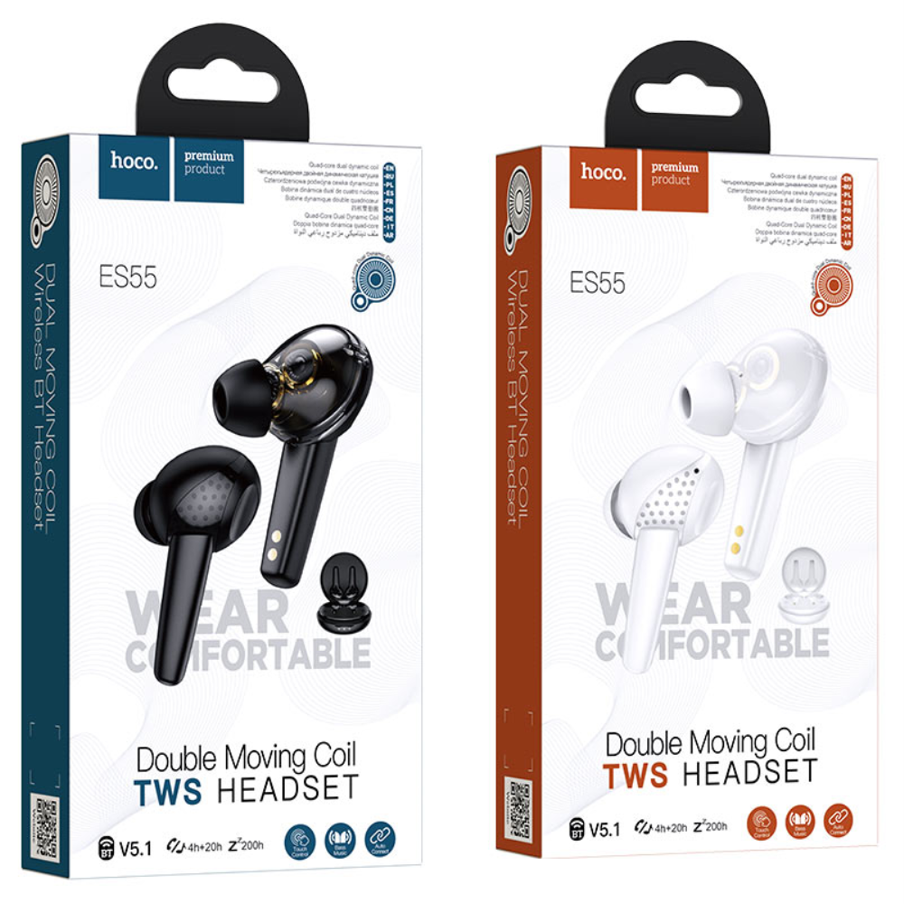 Наушники ES55, HOCO, беспроводные наушники, капельки, черные