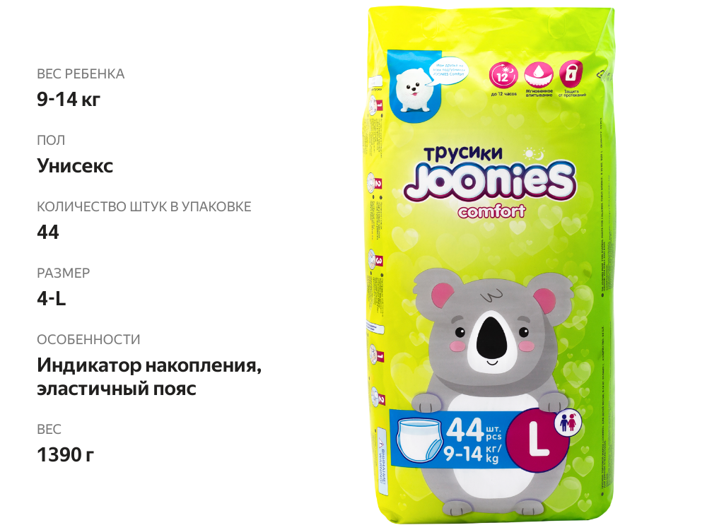 Купить Joonies трусики Comfort L (9-14 кг) 44 шт.