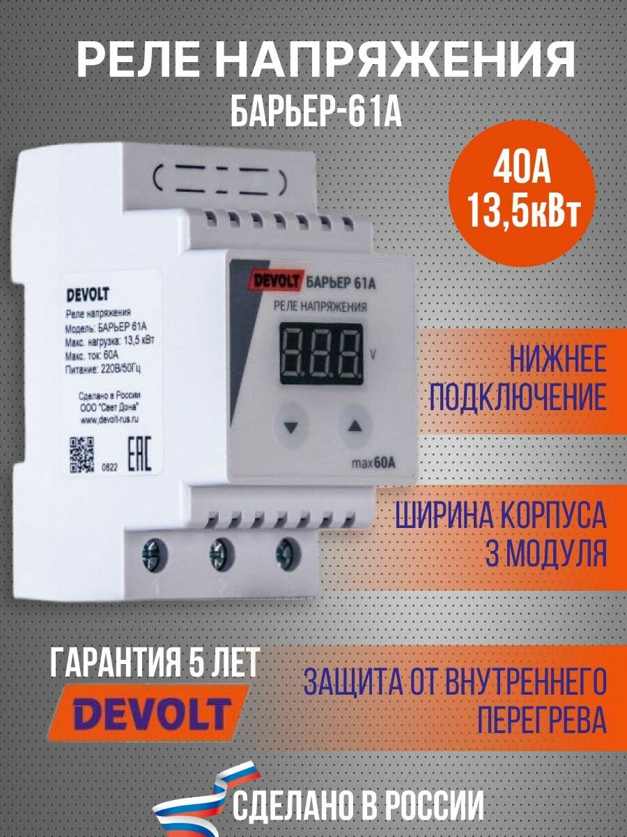 Реле напряжения Devolt Барьер-61а, 60А .