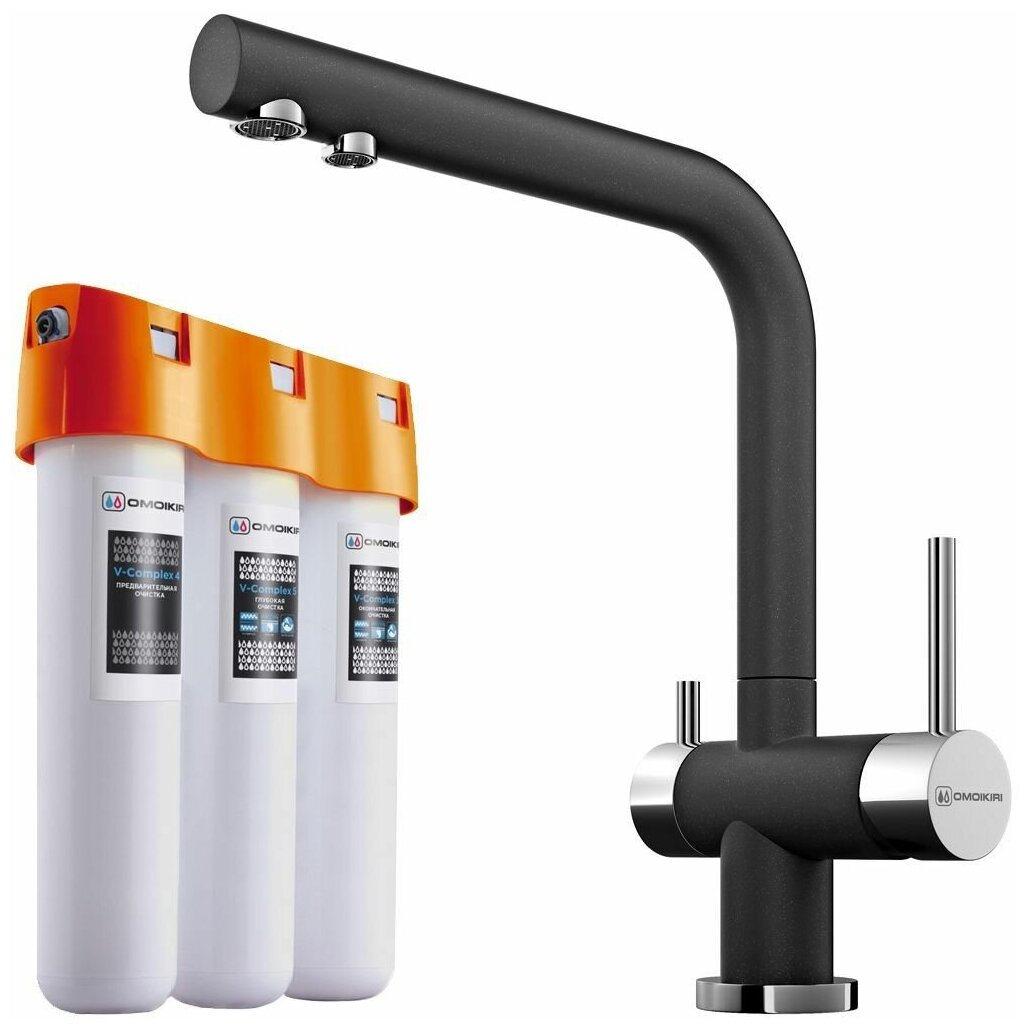 Комплект смеситель для кухни с фильтром Omoikiri Nagano- BL + Pure drop Lite, черный