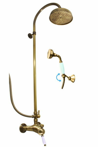 Смеситель RAV Slezаk Labe для душа с керамическим переключателем,душ. штангой 1300mm, ручная лейка,верхний душ 20см,душевой шланг 1,5м , металлический, двойной оплетки, бронзовый