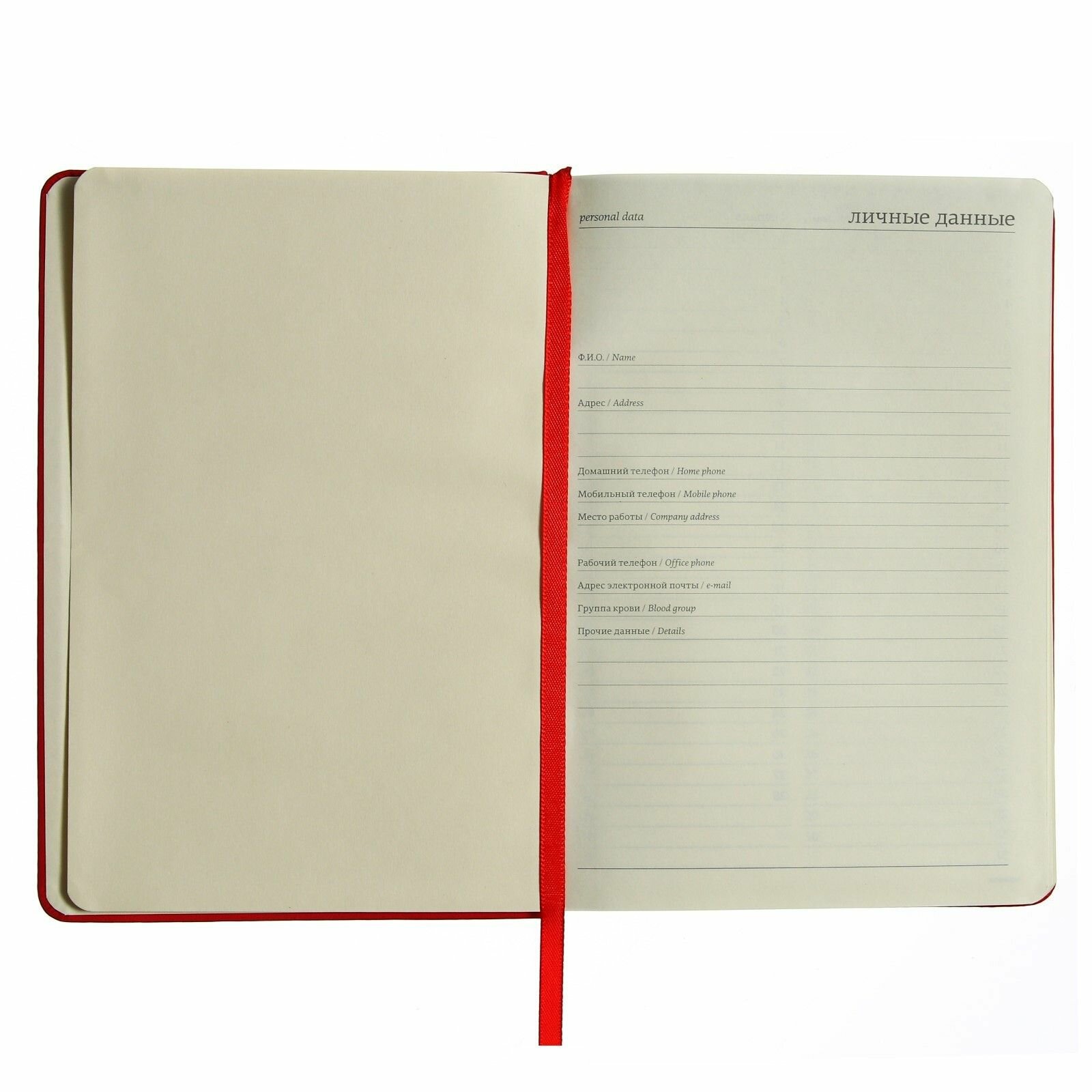 Ежедневник недатированный А5, 160 листов MEGAPOLIS VELVET, твёрдая обложка, искусственная кожа, ляссе, на резинке, с карманом для бумаг, бежевый блок 70 г/м2, красный