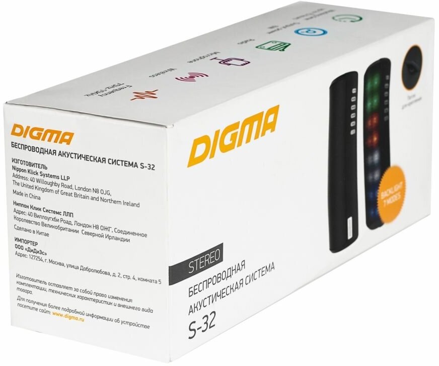 Колонка порт. Digma S-32 черный 6W 1.0 BT 2000mAh (плохая упаковка)