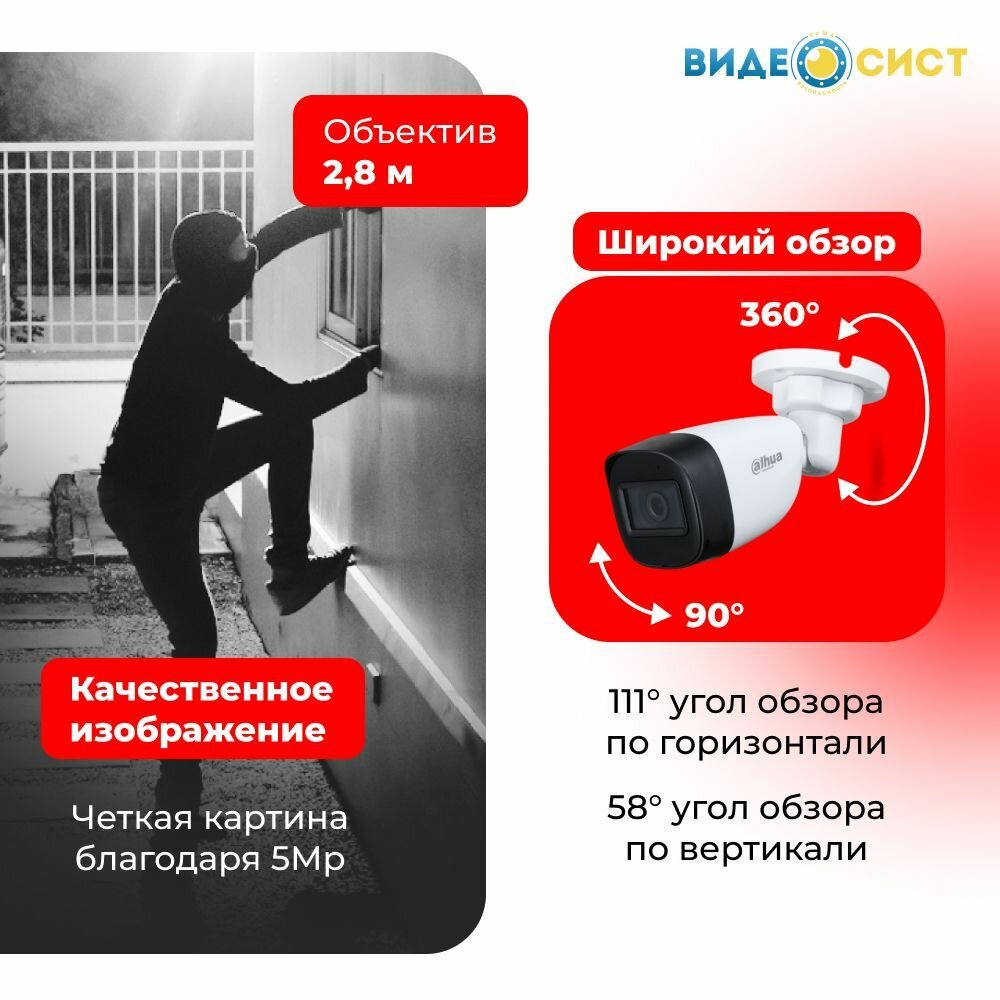 Уличная камера видеонаблюдения Dahua DH-HAC-HFW1500CP-0280B 5Мп цилиндрическая HDCVI с ИК-подсветкой