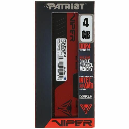 Оперативная память PATRIOT MEMORY Patriot DDR4 4Gb 2666MHz pc-21300 Viper Elite ll (PVE244G266C6)