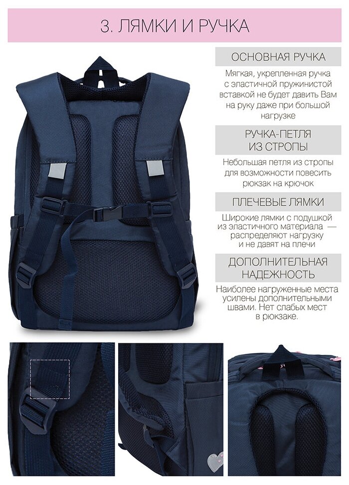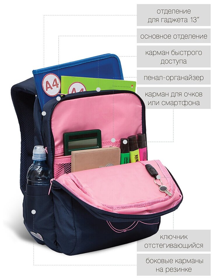 Рюкзак школьный с карманом для ноутбука 13", двумя отделениями, анатомической спинкой, для девочки RG-166-3/4 интересное: