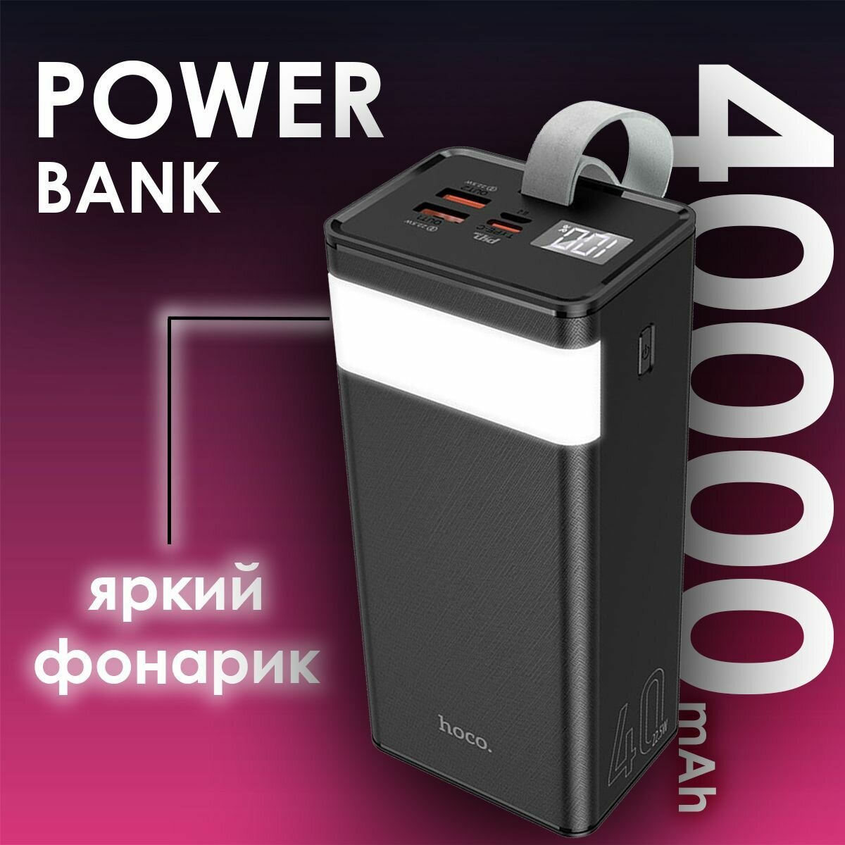 Внешний аккумулятор HOCO J86 Power Master, 40000 mAh, 22.5W, LED дисплей, Лампа, Черный