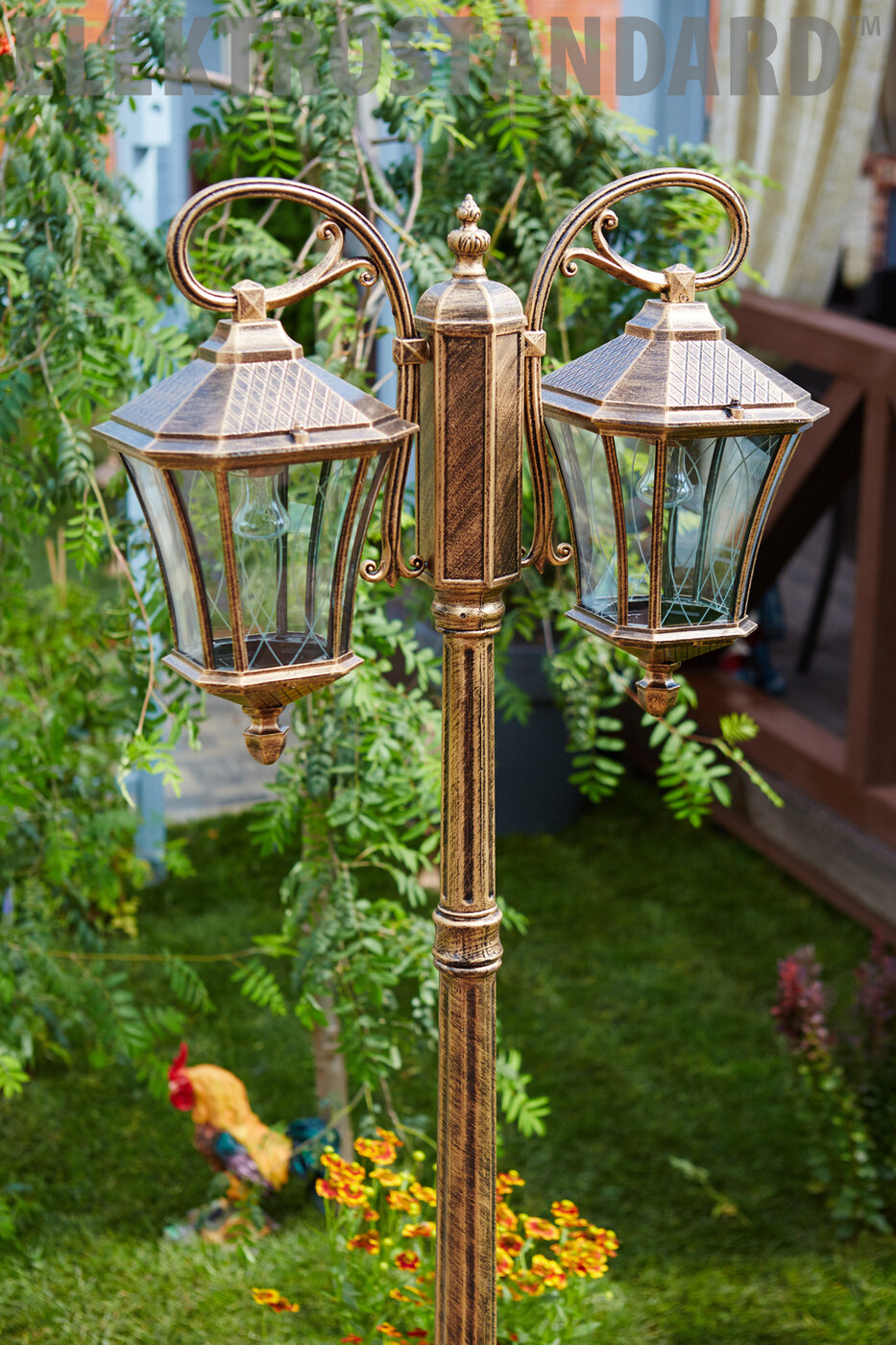 Уличный светильник на столбе Elektrostandard Virgo F/2 GLXT-1450F/2, IP44, цвет черное золото