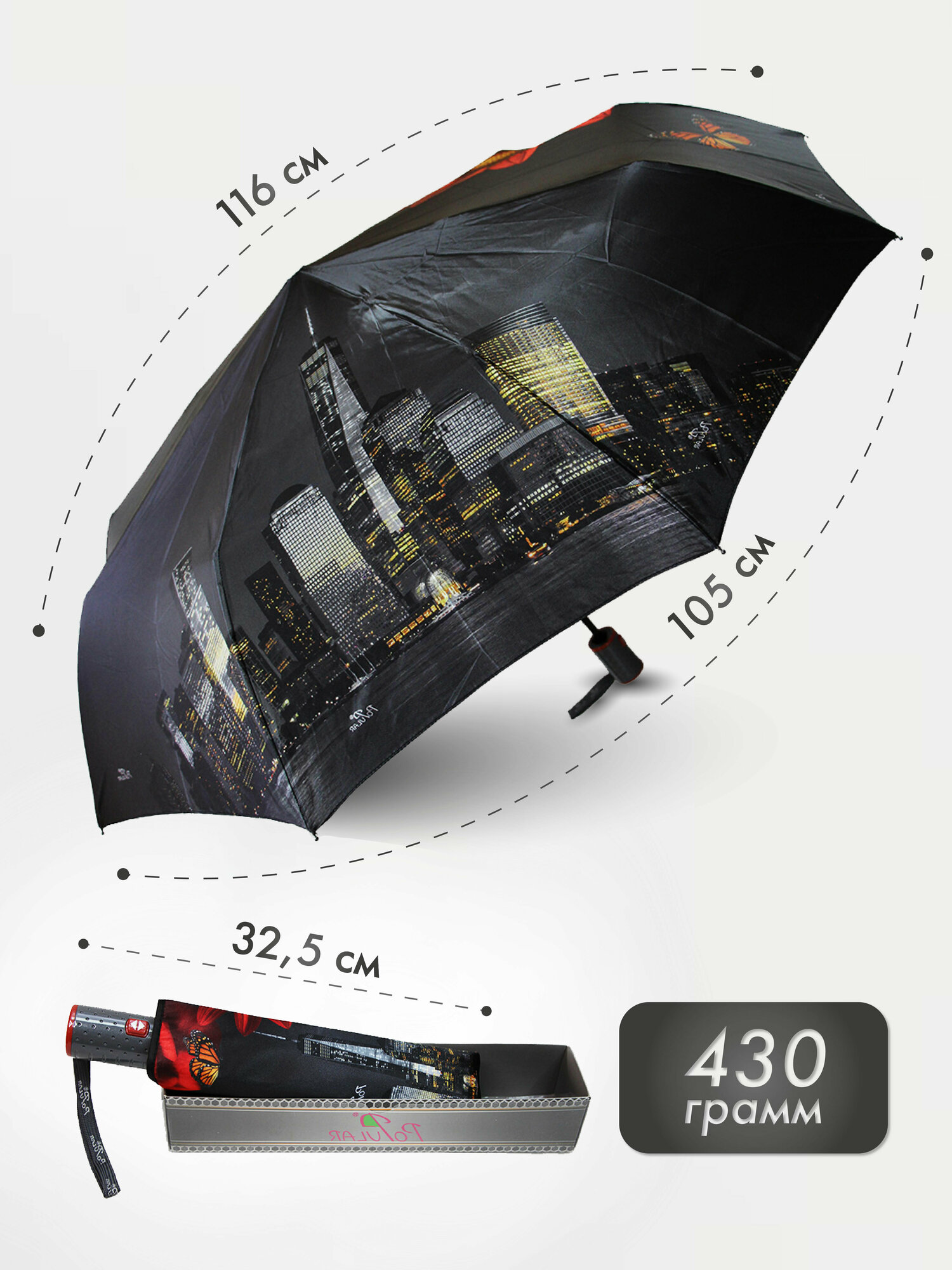 | Дополнительная информация | Комплектация: зонт 1шт, чехол 1шт, подарочная коробка 1шт. |