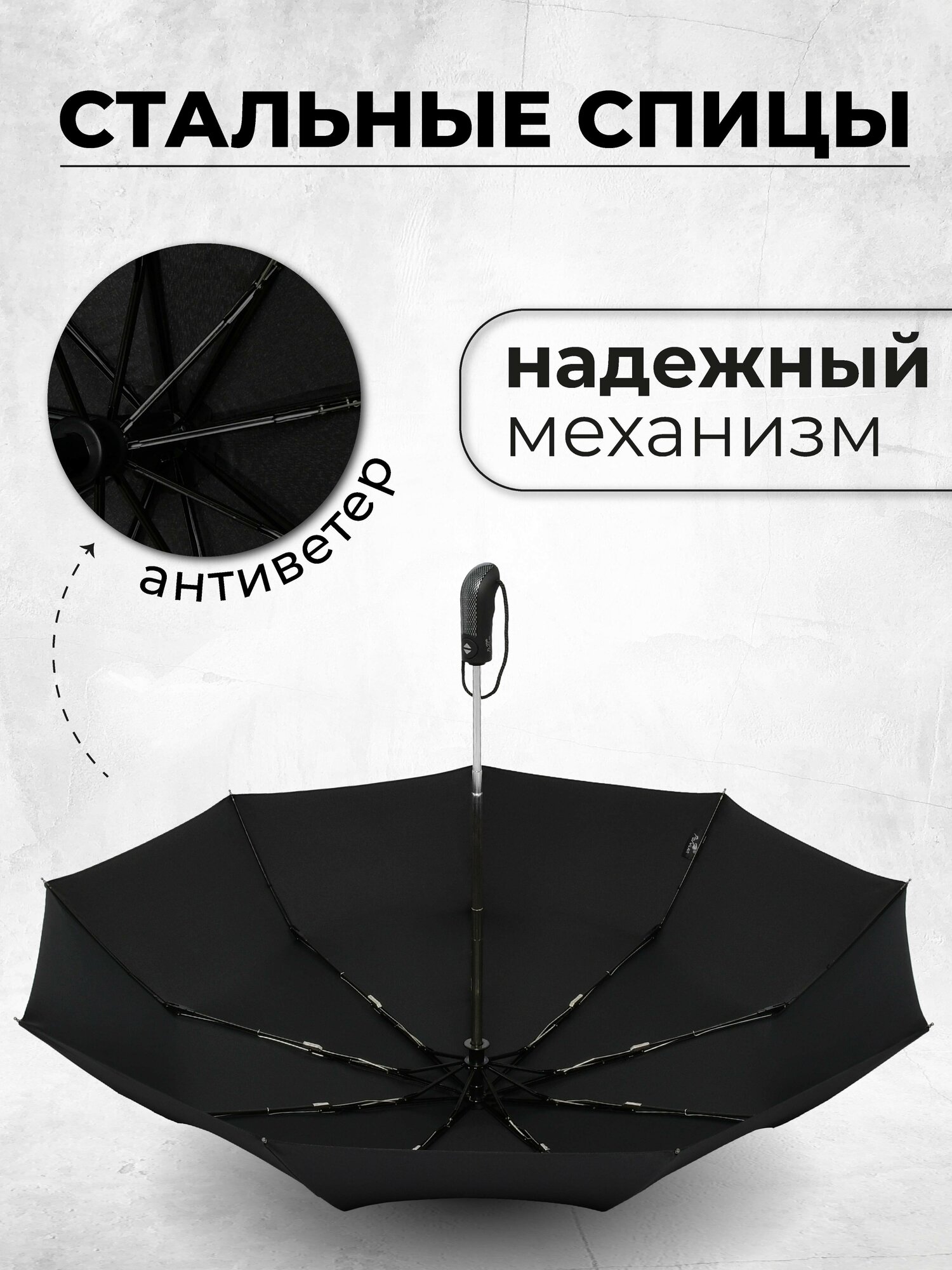 Зонт мужской автомат черный антиветер 1016A-K/черный интересное: