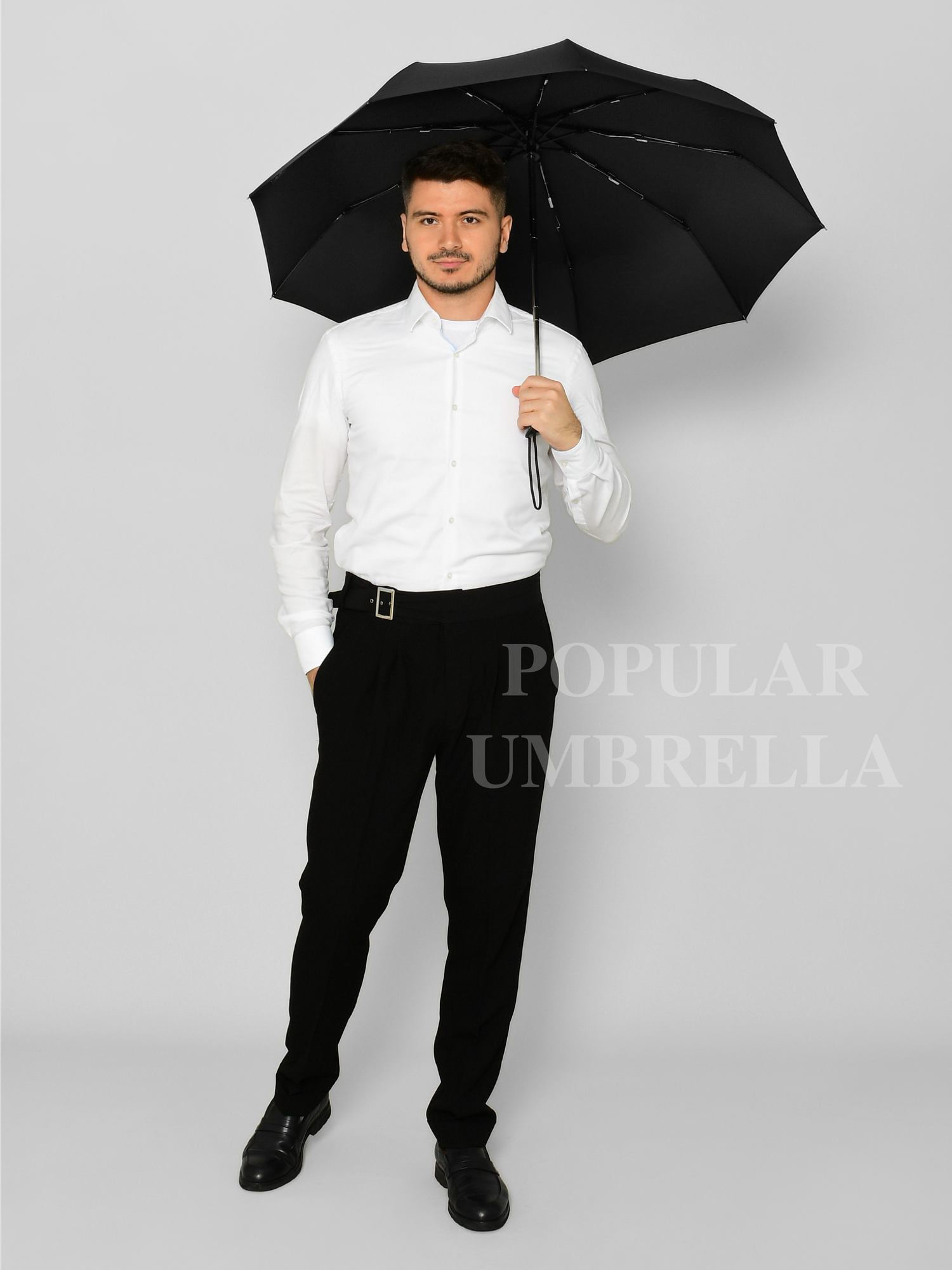 Мужской складной зонт Popular Umbrella автомат 1016A-K/черный