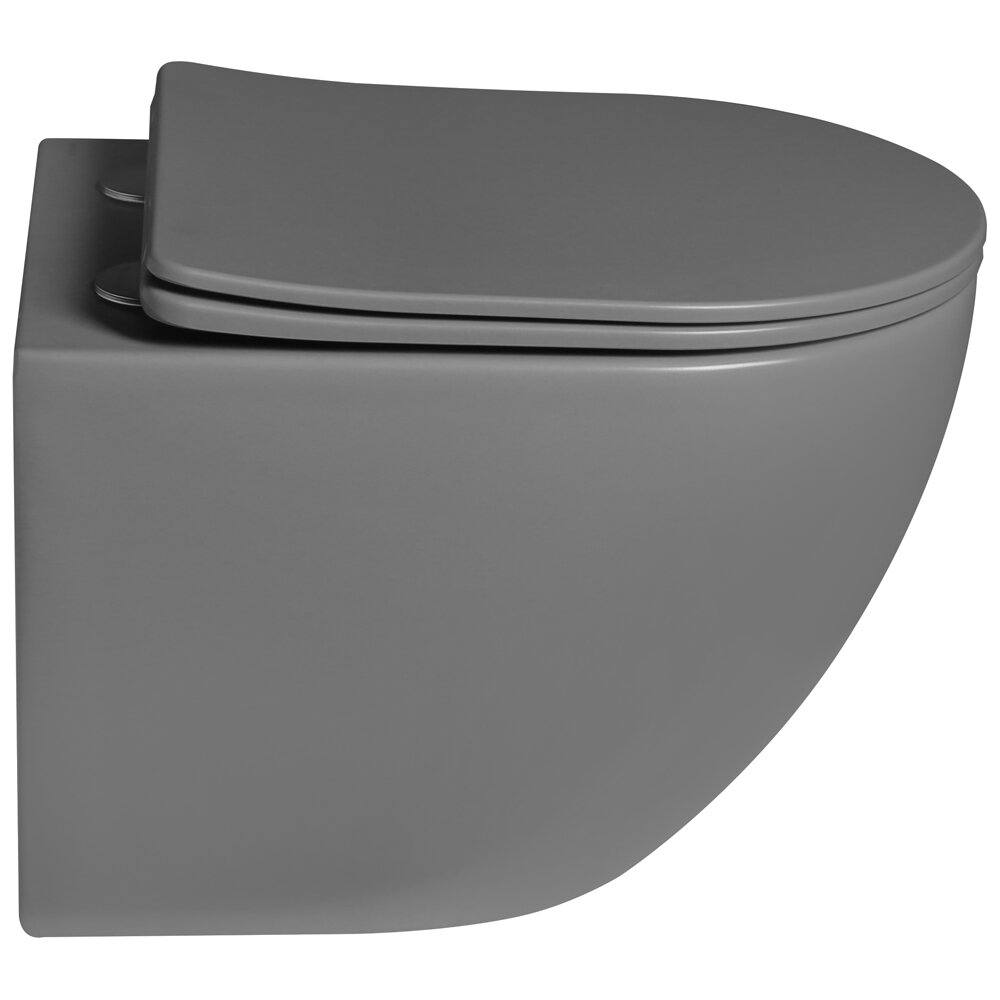 Унитаз подвесной, безободковый, серый матовый, сиденье микролифт SantiLine SL-5005MG