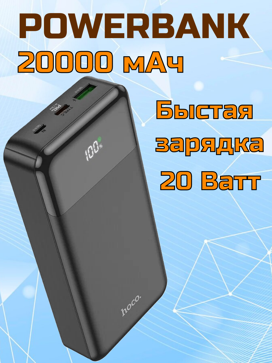 Внешний аккумулятор HOCO J102A 20000 mAh 20W "быстрая зарядка" черный