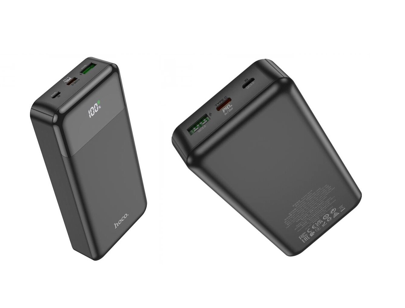Универсальный Доп. Аккумулятор 30000mAh, J108B, HOCO, выход: 1 USB (22.5W)+1 PD (18W), черный