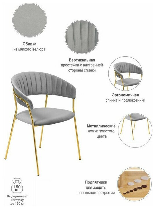 СохранитьКухонный стул со спинкой Turin серый с золотыми ножками / мягкий велюр / со спинкой / кухонный / обеденный / для дома интересное: