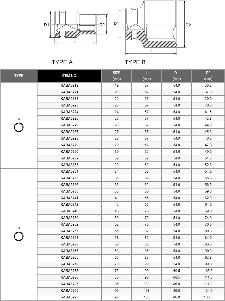 Головка ударн. 1" 90мм 6гр. TOPTUL (Длина - 108 мм) (KABA3290)