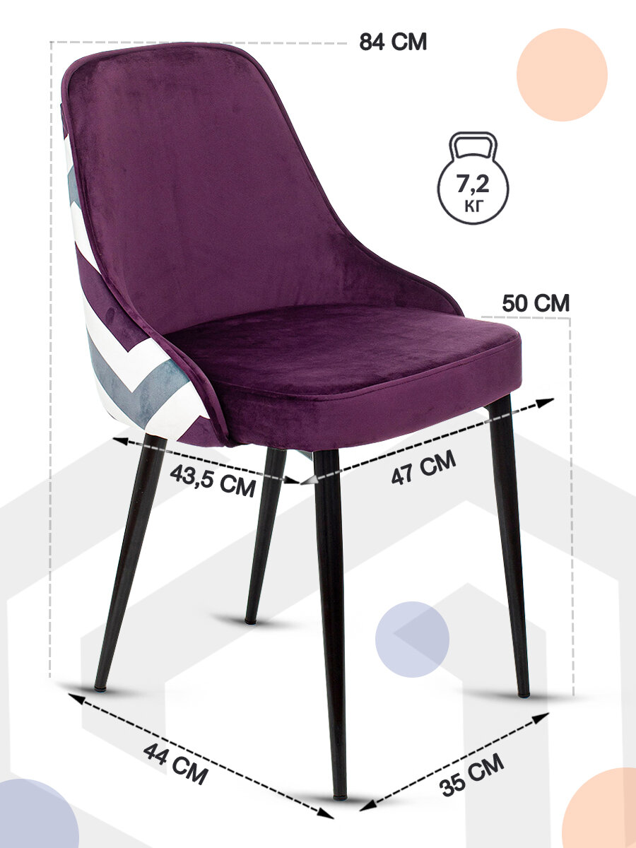 Стул KF-5 фиолетовый зигзаг, ткань, для дома, кухни, гостиной на металлических ножках с пластиковыми заглушками