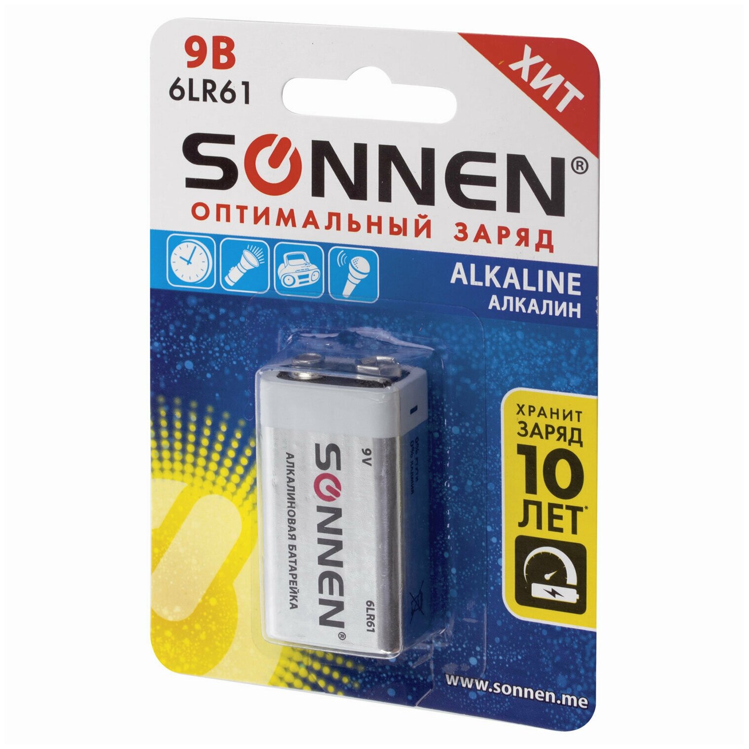 Батарейка Sonnen Alkaline, Крона (6LR61, 6LF22, 1604A), алкалиновая, 1 шт., блистер, 451092
