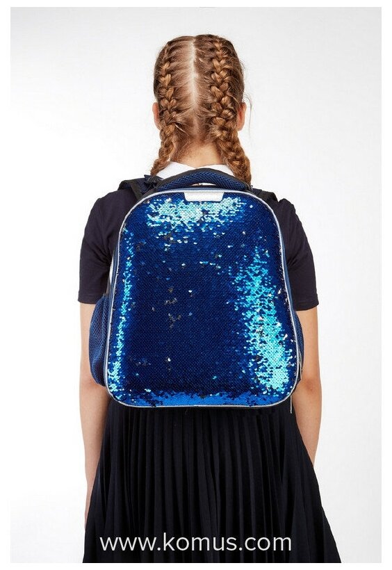 Ранец №1School Sparkle Blue,эргоном. спинка, двусторонние пайетки интересное: