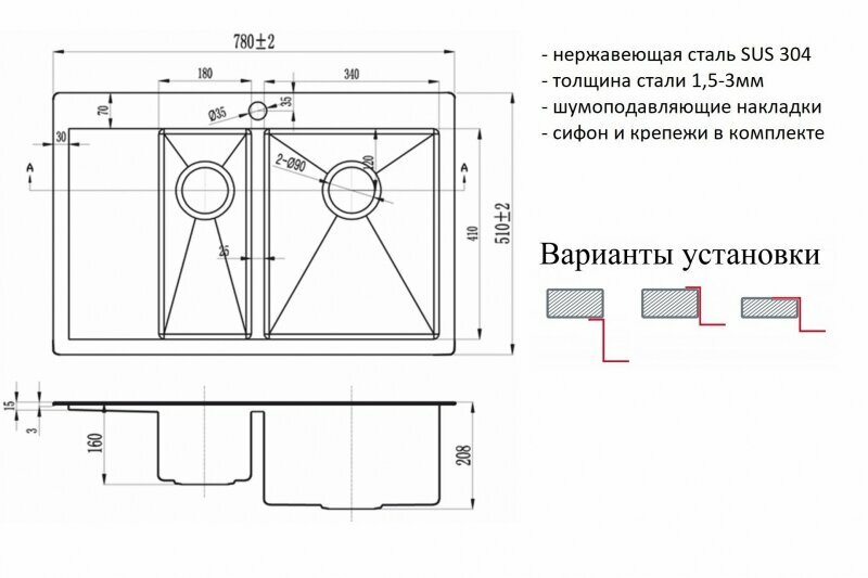 | Установка | врезная |