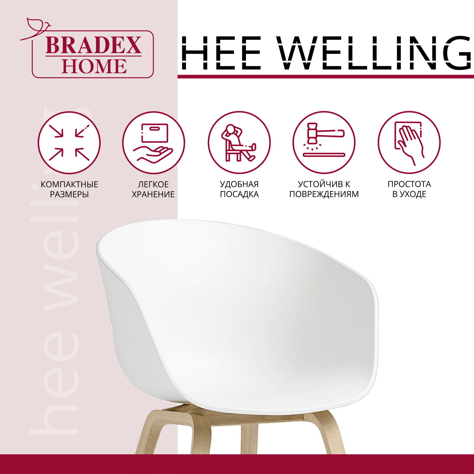 СохранитьКресло HEE WELLING белый / Кресло в гостиную / Кресло на дачу / Кресло к дивану / Кресло в офис интересное: