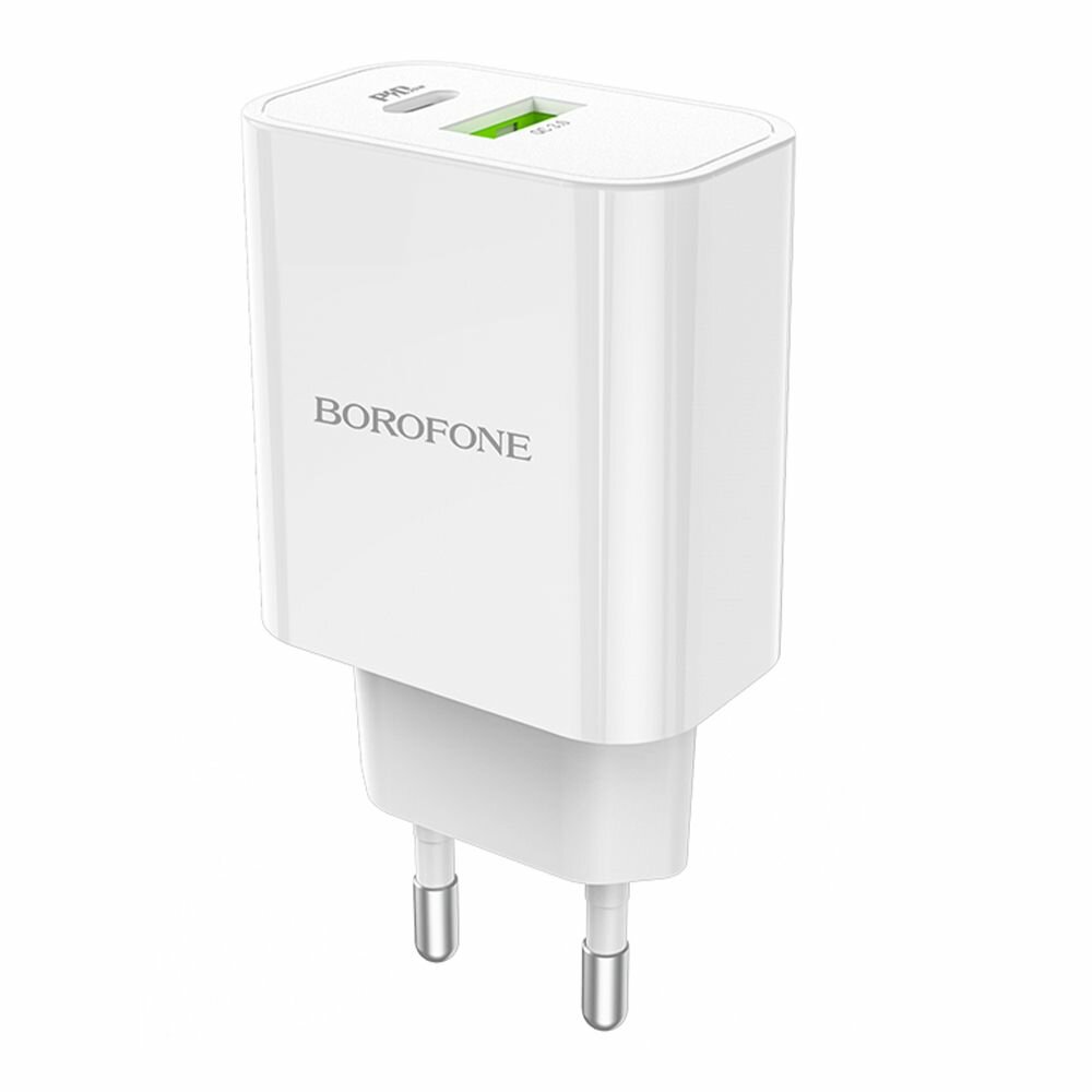 Купить Блок питания сетевой 1 USB, Type-C Borofone BA55A, Crown, 20Вт, QC3.0, PD, цвет: белый