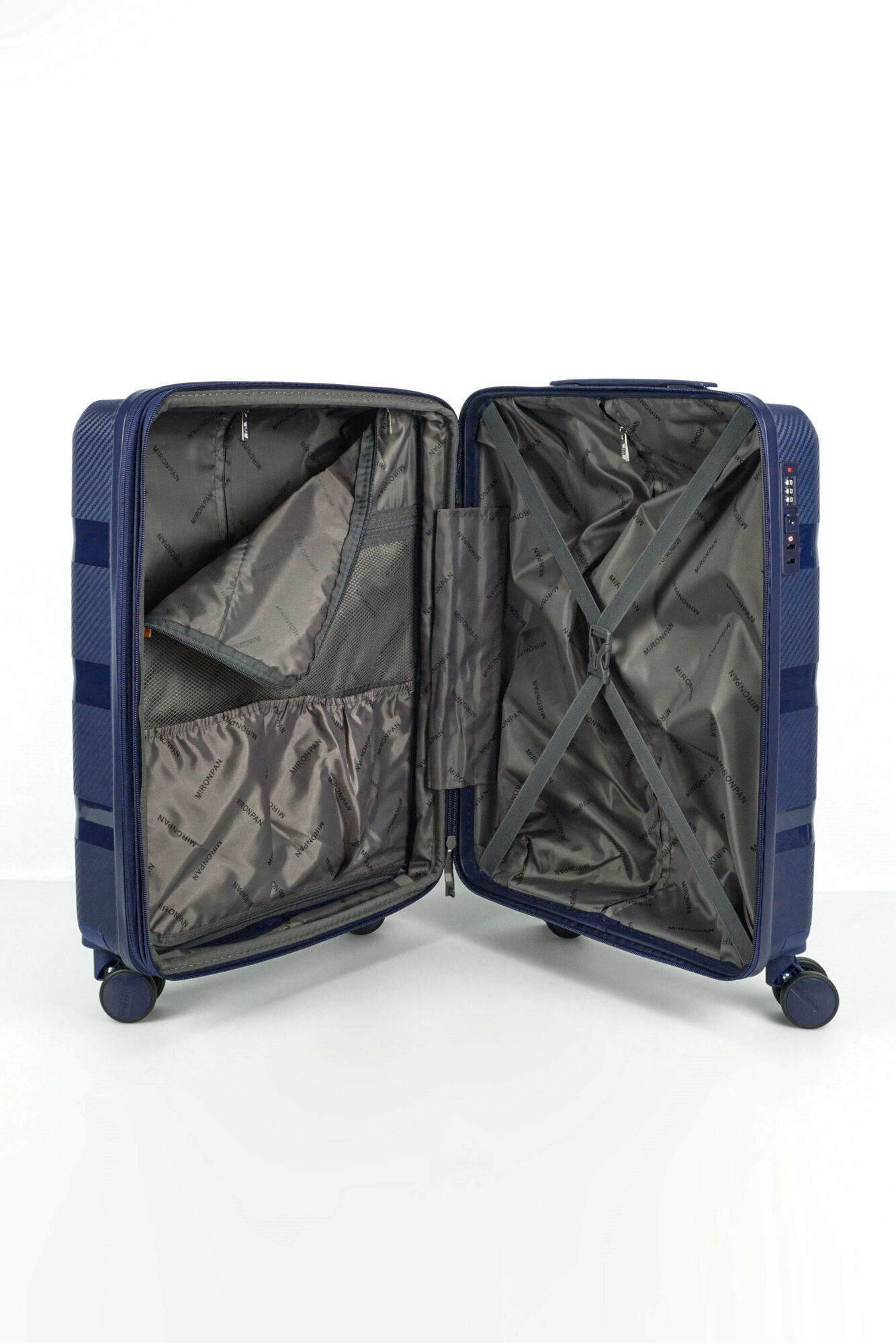 Чемодан Sweetbags средний из полипропилена с расширением на 4-х колесах с TSA замком (3 гориз. полосы) темно-синий M+