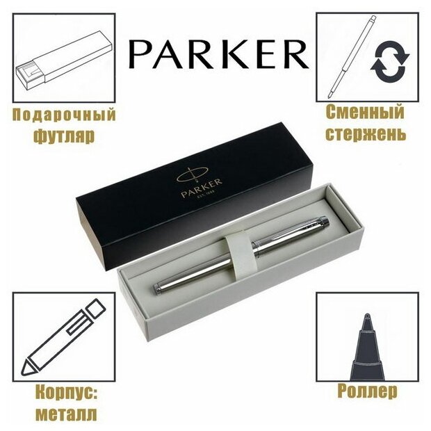 Роллер "Parker IM Stainless Steel CT",черный, в упаковке,Китай,2143633