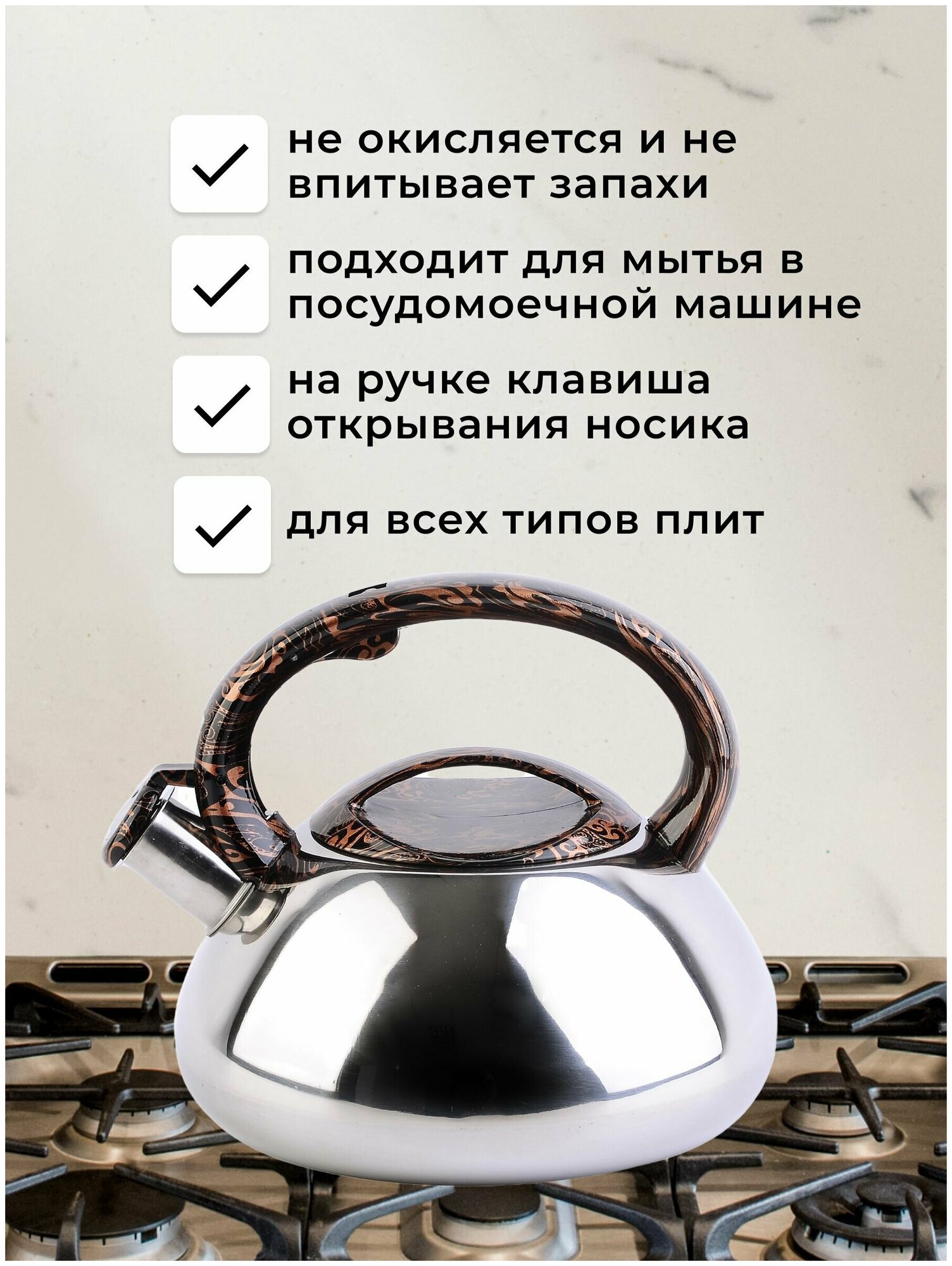 Чайник Winner WR, 3 л , нержавеющая сталь, цвет мрамор