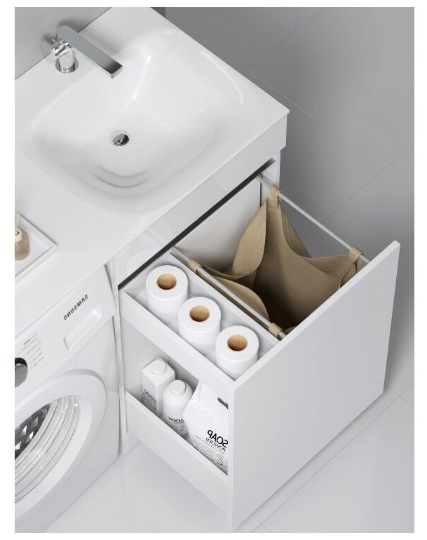 Тумба под раковину со стиральной машиной 115 см, с бельевой корзиной, белая, Aqwella Forma FOR0105KR интересное: