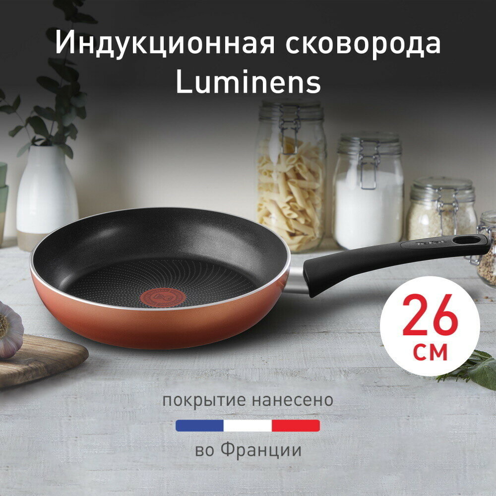 Купить Сковорода Tefal Luminens 04224126 26 см, с индикатором температуры, глубокая, с антипригарным покрытием, подходит для индукции
