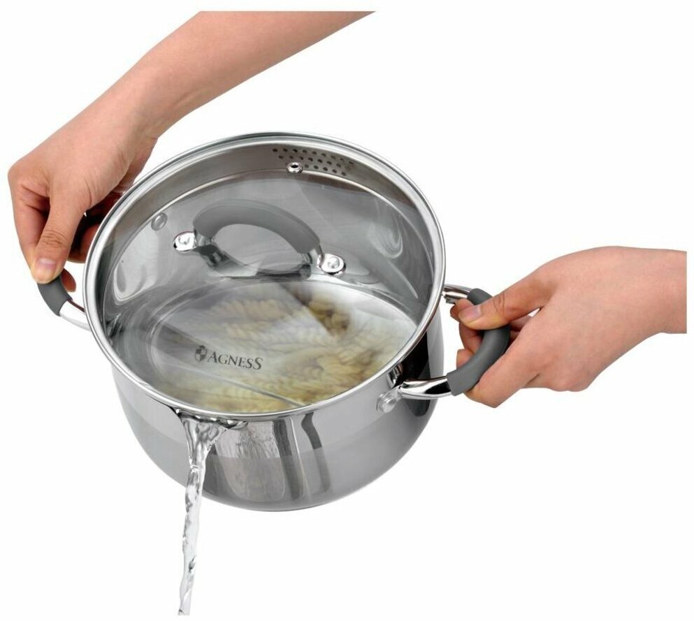 Кастрюля нержавеющая сталь для индукционных плит agness "profi home" со стеклянной крышкой, 2,0л 18x10.5 см интересное: