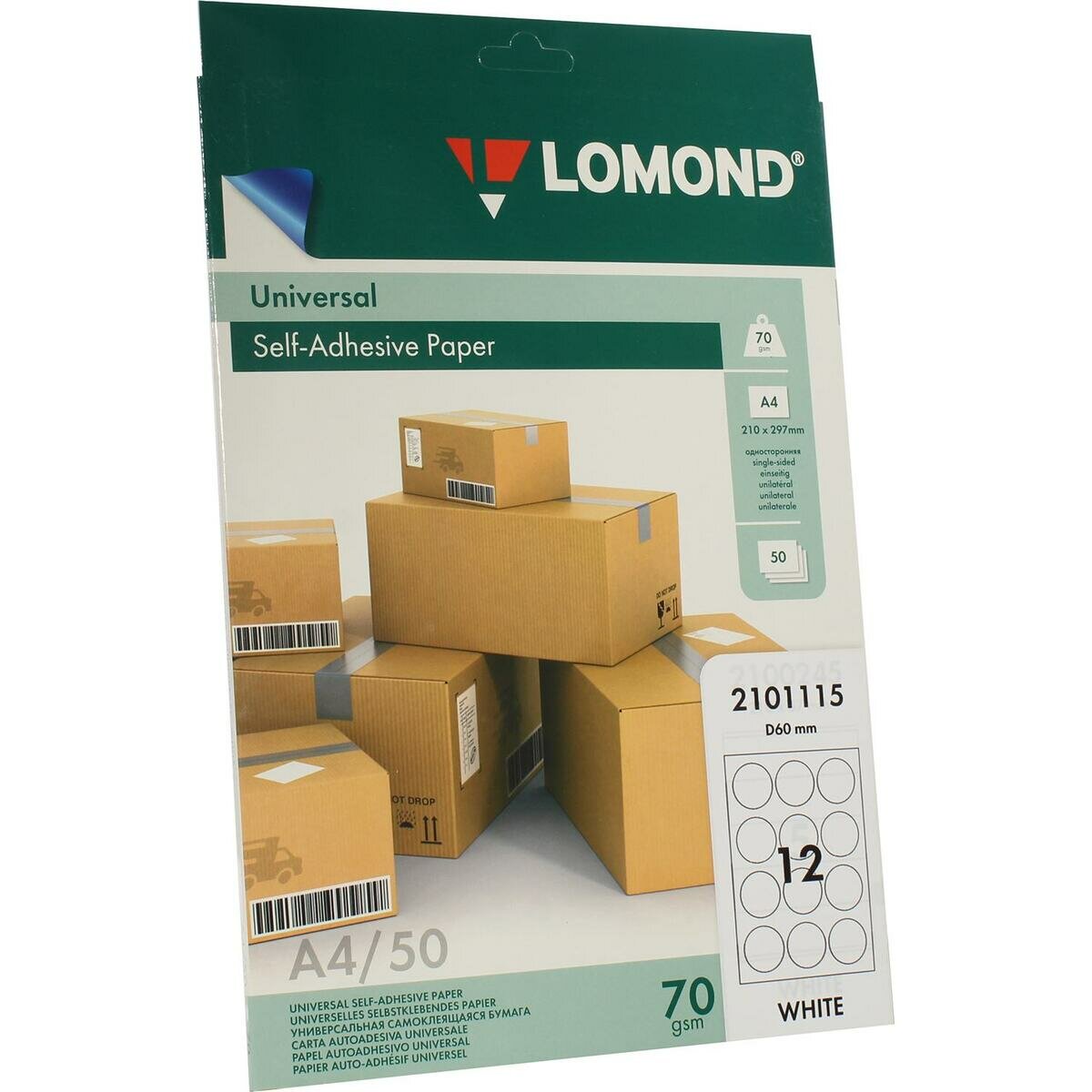 Купить Самоклеящаяся бумага LOMOND универсальная для этикеток, A4, 12 делен. (D60мм), 70 г/м2, 50 листов