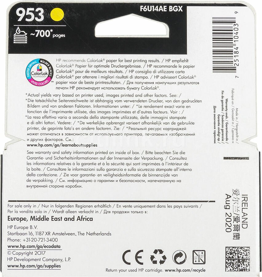 Ниже Вы можете прочитать отзывы на Hp Расходные материалы F6U14AE Картридж струйный 953 желтый, ознакомится с подробными характеристиками, посмотреть интересные обзоры и фотографии на Hp Расходные материалы F6U14AE Картридж струйный 953 желтый.