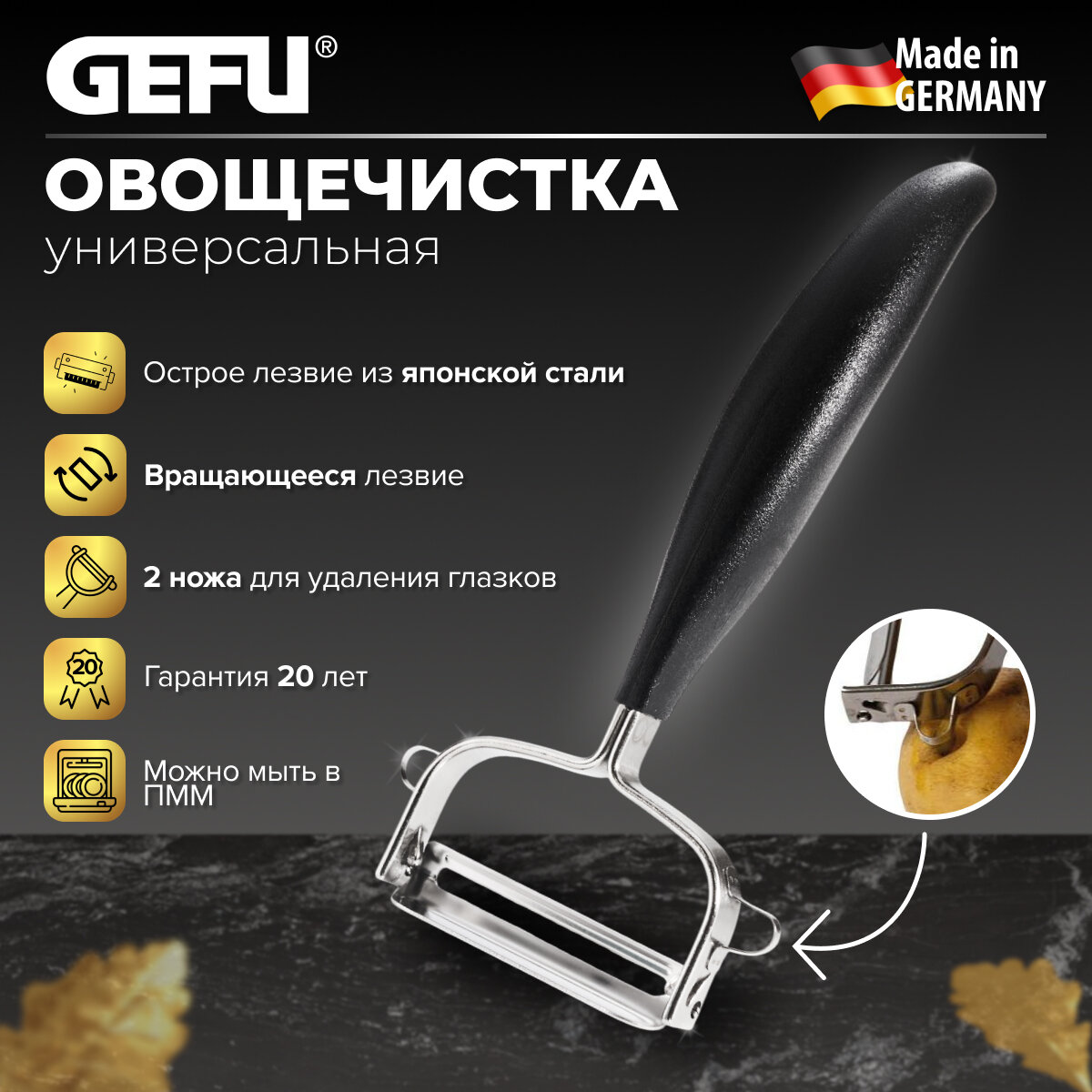 Овощечистка GEFU универсальная интересное: