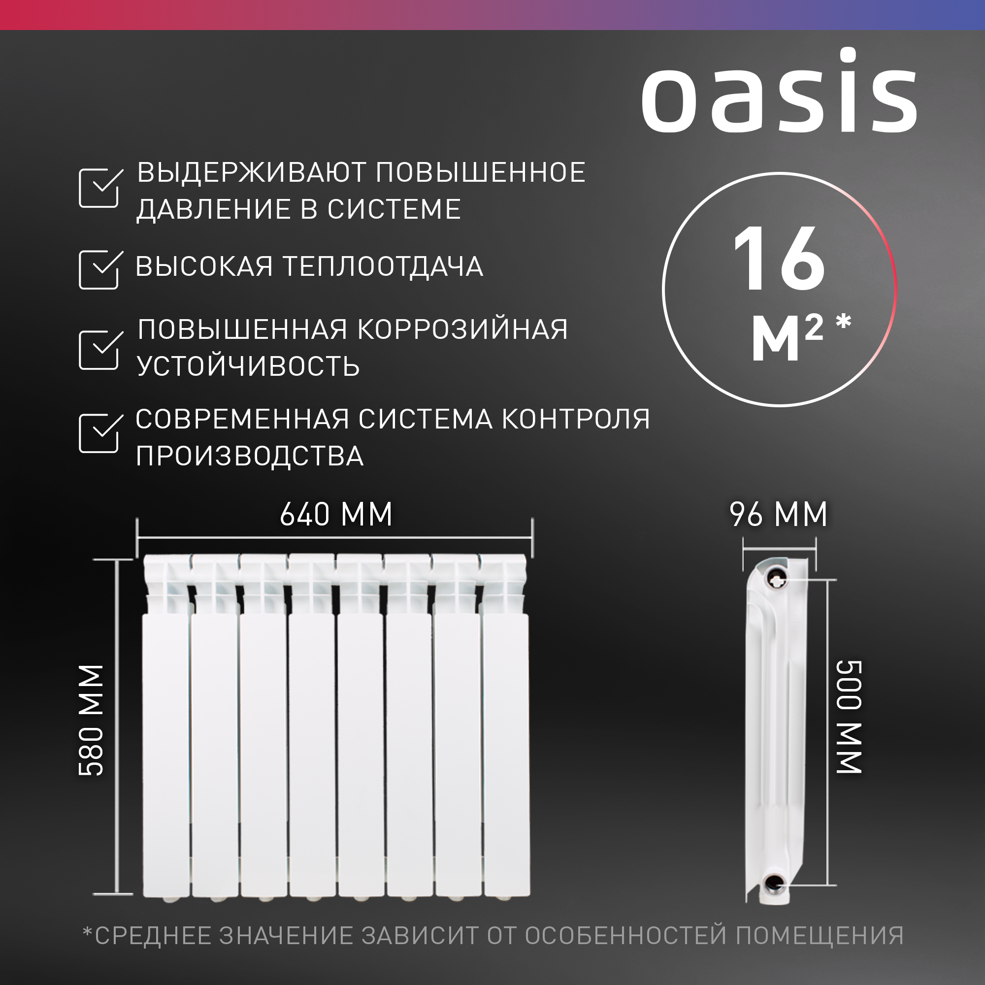 СохранитьРадиатор отопления алюминиевый Oasis Pro 500/96/8, 8 секций интересное: