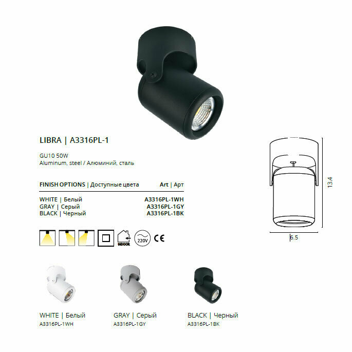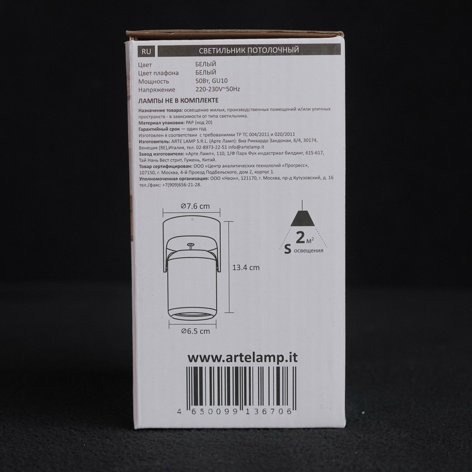 Накладной светильник Arte Lamp Libra A3316PL-1WH, GU10, кол-во ламп:1шт., Белый