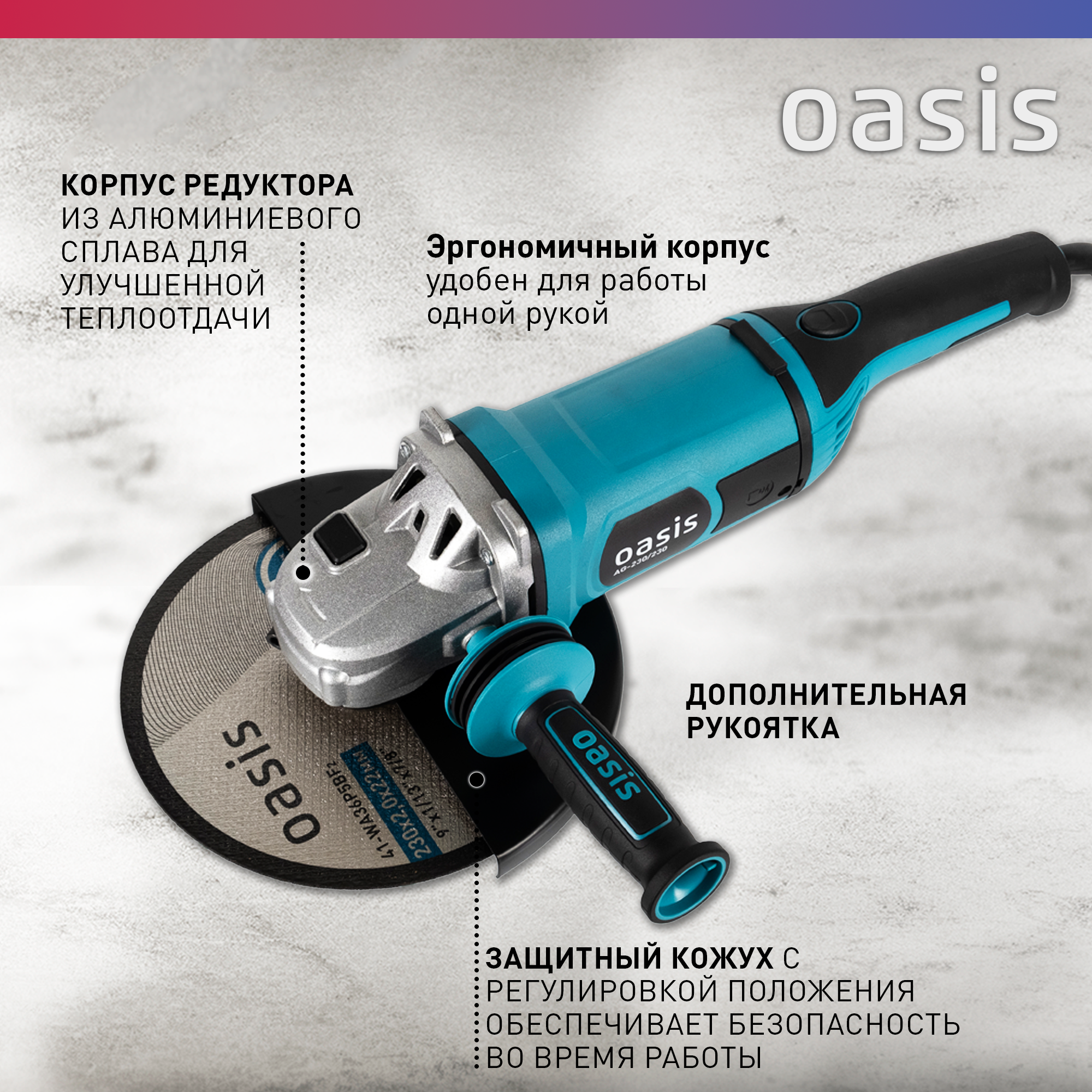 УШМ Oasis AG 230/230 Мощность 2300Вт, 230мм, 6500 об/мин
