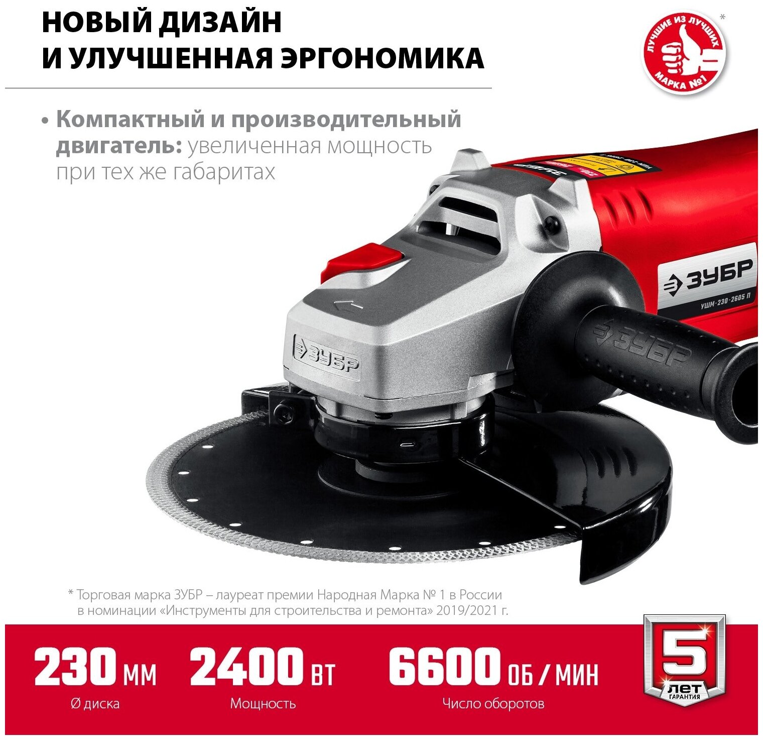 ЗУБР УШМ 230 мм, 2400 Вт, компакт (УШМ-230-2405 П)