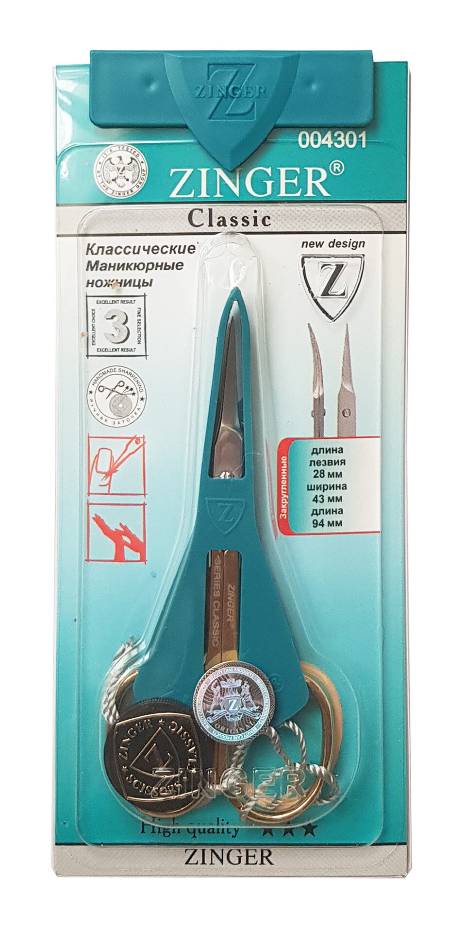 Ножницы для маникюра Zinger B118 Classic, изогнутые, 9,4 см, 2,8 см, в пластиковом футляре