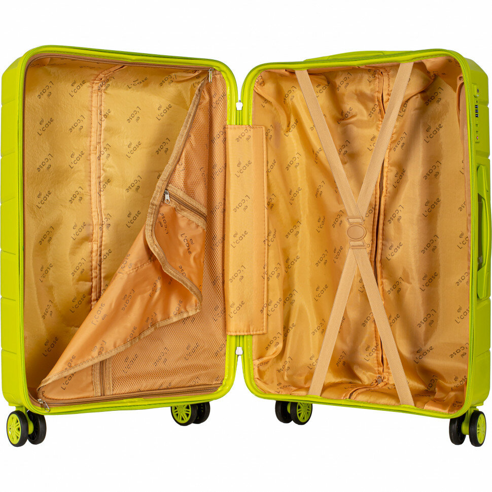 Чемодан на колесах Lcase Singapore, Лаймовый. Большой L, полипропилен. Дорожный чемодан на колесиках для путешествий и поездок.