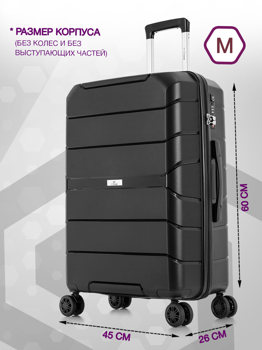 Чемодан на колесах Lcase Singapore, Черный. Средний М. Дорожный чемодан на колесиках для путешествий и поездок.