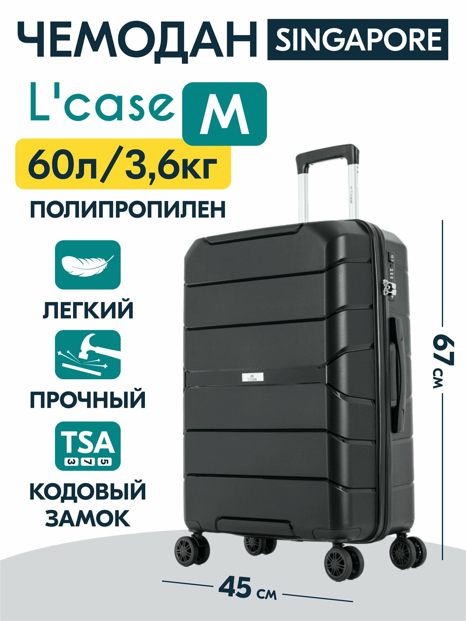 Чемодан на колесах Lcase Singapore, Черный. Большой L, полипропилен. Дорожный чемодан на колесиках для путешествий и поездок.