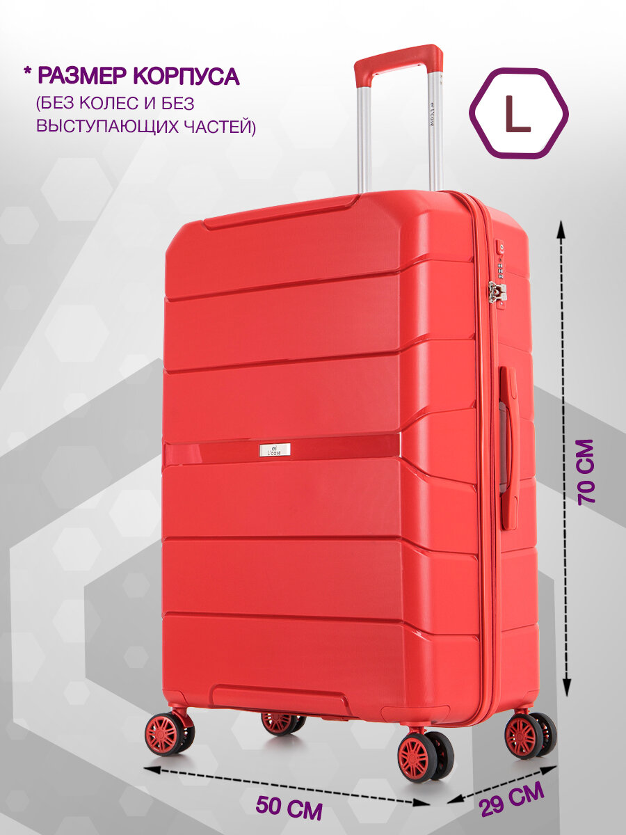 Чемодан на колесах Lcase Singapore, Красный. Большой L, полипропилен. Дорожный чемодан на колесиках для путешествий и поездок.